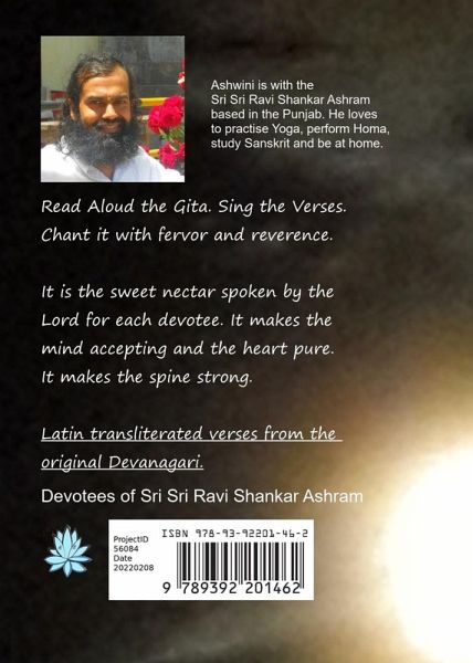 Lists all the 700 verses of the Gita with pauses at 8 syllables i.e. at each quarter, in Latin Transliteration using the IAST standard. Makes it very easy for an English reader to learn the proper chanting.