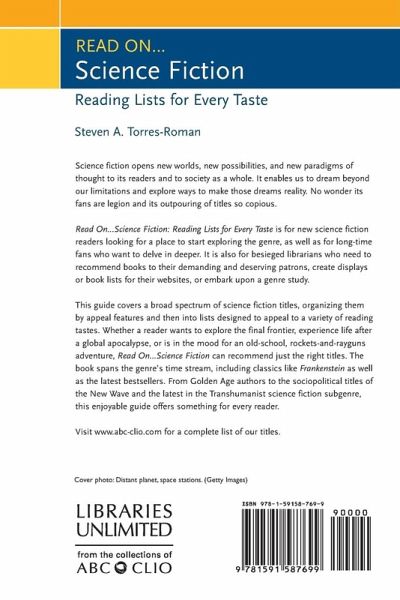 Read On.Science Fiction: Reading Lists for Every Taste offers excellent recommendations for everyone interested in the genre, from the newest explorers making their first forays to the most experienced and adventurous readers. Read On.Science Fiction: Reading Lists for Every Taste is for new science fiction readers looking for a place to start exploring the genre, as well as for long-time fans who want to delve in deeper. It is also for besieged librarians who need to recommend books to their demanding and deserving patrons, create displays or book lists for their web sites, or embark upon a genre study. The guide covers a broad spectrum of science fiction titles, organizing books into lists designed to appeal to a variety of reading tastes. Whether a reader wants to explore the final frontier, experience life after a global apocalypse, or is in the mood for an old-school, rockets-and-rayguns adventure, Read On.Science Fiction can recommend just the right titles. The book spans the genre's time stream, including classics like Frankenstein as well as the latest bestsellers. From Golden Age authors to the sociopolitical titles of the New Wave and the latest in the Transhumanist science fiction subgenre, this enjoyable guide offers something for every reader.