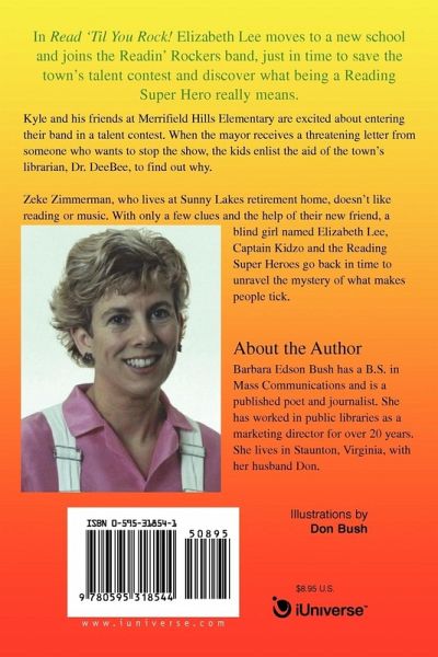 In Read 'Til You Rock! Elizabeth Lee moves to a new school and joins the Readin' Rockers band, just in time to save the town's talent contest and discover what being a Reading Super Hero really means. Kyle and his friends at Merrifield Hills Elementary are excited about entering their band in a talent contest. When the mayor receives a threatening letter from someone who wants to stop the show, the kids enlist the aid of the town's librarian, Dr. DeeBee, to find out why. Zeke Zimmerman, who lives at Sunny Lakes retirement home, doesn't like reading or music. With only a few clues and the help of their new friend, a blind girl named Elizabeth Lee, Captain Kidzo and the Reading Super Heroes go back in time to unravel the mystery of what makes people tick.