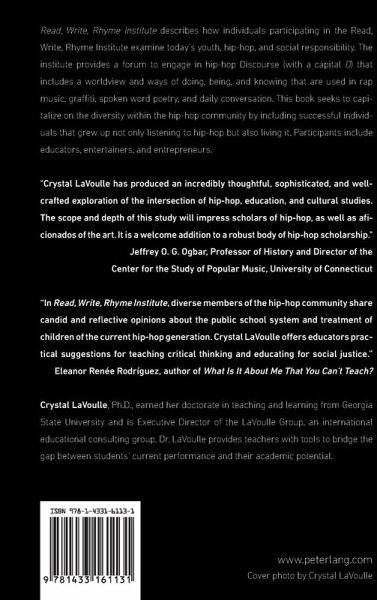 "Crystal LaVoulle has produced an incredibly thoughtful, sophisticated, and well-crafted explo-ration of the intersection of hip-hop, education, and cultural studies. The scope and depth of this study will impress scholars of hip-hop, as well as aficionados of the art. It is a welcome addition to a robust body of hip-hop scholarship." Jeffrey O. G. Ogbar, Professor of History and Director of the Center for the Study of Popular Music, University of Connecticut
