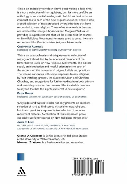 Acknowledgements List of abbreviations Introduction PART 1: NEW RELIGIOUS MOVEMENTS 1. Brahma Kumaris 2. Church Universal and Triumphant 3. The Family (formerly Children of God) 4. The Family Federation for World Peace and Unification (formerly the Unification Church) 5. The Friends of the Western Buddhist Order 6. The International Society for Krishna Consciousness 7. Osho / Rajneesh 8. The Radlian Movement PART 2: READINGS 1. Origins and founder-leaders 2. Key writings and scriptures 3. Predicament 4. Worldviews 5. Lifestyle 6. Spiritual practice 7. Social issues 8. Organisation 9. Ultimate goal PART 3: RESPONSES Introduction 1. Counselling and monitoring organisations 2. Official reports: governmental 3. New religions and the Churches Glossary of terms Bibliography