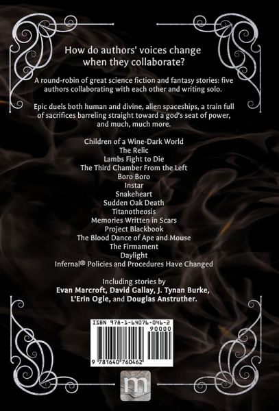 A round-robin of great science fiction and fantasy stories. Five authors with each other and writing solo. Epic duels both human and divine, alien spaceships, a train full of sacrifices barreling straight toward a god's seat of power, and much, much more.