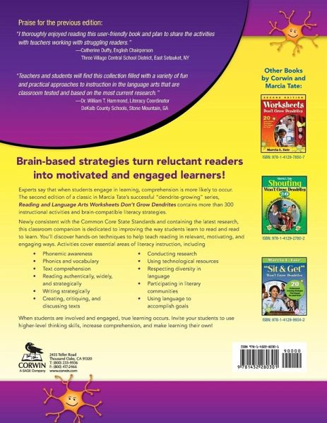 Marcia L. Tate, EdD, is the former executive director of professional development for the DeKalb County School System in Decatur, Georgia. During her thirty-year career with the district, she has been a classroom teacher, reading specialist, language arts coordinator, and staff development executive director. Marcia is currently an educational consultant and has taught over 500,000 administrators, teachers, parents, and business and community leaders throughout the world. She is the author of the eight books in the best-selling Worksheets Don't Grow Dendrites series and four additional books: Formative Assessment in a Brain-Compatible Classroom: How Do We Really Know They're Learning?, 100 Brain-Friendly Lessons for Unforgettable Teaching and Learning K-8, and 100 Brain-Friendly Lessons for Unforgettable Teaching and Learning 9-12, and her latest book, Healthy Teachers, Happy Classrooms that is designed to address both the personal and professional lives of all educators. Participants in her workshops refer to them as some of the best ones they have ever experienced since Marcia uses the twenty strategies outlined in her books to actively engage her audiences. Marcia received her bachelor's degree in psychology and elementary education from Spelman College in Atlanta, Georgia. She earned her master's degree in remedial reading from the University of Michigan in Ann Arbor, her specialist degree in educational leadership from Georgia State University, and her doctorate in educational leadership from Clark Atlanta University. Marcia is married to Tyrone Tate and is the proud mother of three children: Jennifer, Jessica, and Christopher, and nine grandchildren: Christian, Aidan, Maxwell, Aaron, Roman, Shiloh, Aya, Noah, and Alyssa. Marcia and her husband own the company Developing Minds, Inc. and can be contacted by calling the company at (770) 918-5039, emailing her at marciata@ bellsouth.net, or by visiting her website at www.developingmindsinc.com. You can also follow her on Twitter and Instagram at @DrMarciaTate.
