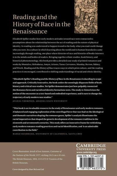 Elizabeth Spiller studies how early modern attitudes towards race were connected to assumptions about the relationship between the act of reading and the nature of physical identity. As reading was understood to happen in and to the body, what you read could change who you were. In a culture in which learning about the world and its human boundaries came increasingly through reading, one place where histories of race and histories of books intersect is in the minds and bodies of readers. Bringing together ethnic studies, book history and historical phenomenology, this book provides a detailed case study of printed romances and works by Montalvo, Heliodorus, Amyot, Ariosto, Tasso, Cervantes, Munday, Burton, Sidney and Wroth. Reading and the History of Race traces ways in which print culture and the reading practices it encouraged, contributed to shifting understandings of racial and ethnic identity.