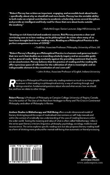 This book asks why reading matters so much to so many people. Its answer is that reading is a philosophical activity: a way of working through, and taking a stand on, fundamental questions about who and what we are, how we should live, and how we relate to other things.