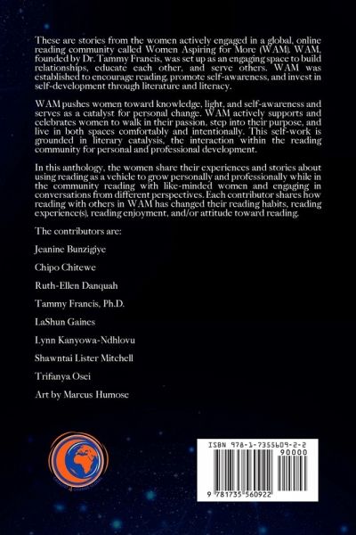 These are stories from the women actively engaged in a global, online reading community called Women Aspiring for More (WAM). WAM, founded by Dr. Tammy Francis, was set up as an engaging space to build relationships, educate each other, and serve others. WAM was established to encourage reading, promote self-awareness, and invest in self-development through literature and literacy. In this anthology, the women share their experiences and stories about using reading as a vehicle to grow personally and professionally while in the community reading with like-minded women and engaging in conversations from different perspectives. Each contributor shares how reading with others in WAM has changed their reading habits, reading experience(s), reading enjoyment, and/or attitude toward reading.