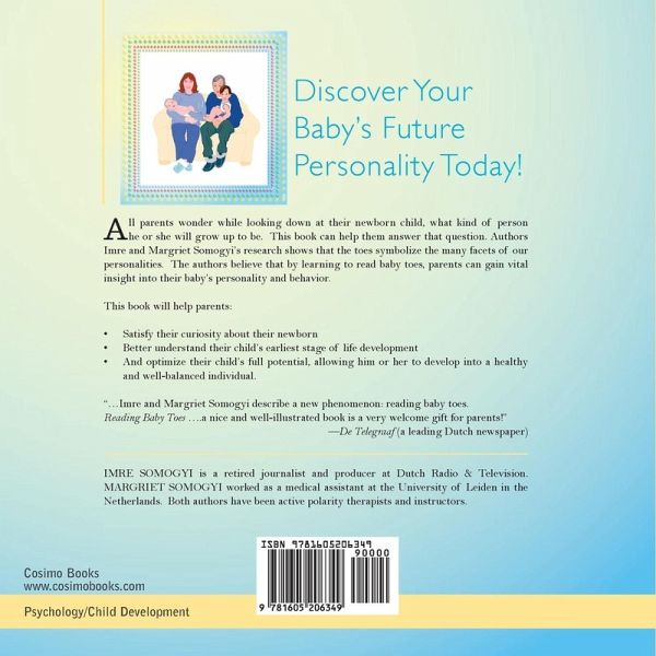 Every parent wonders, while looking down at their newborn child, what kind of person he or she will grow up to be. This book can help parents answer that question without waiting a dozen years or more for the child to grow up. Imre & Margriet Somogyi's research as led them to believe that parents can learn to read their baby's toes for clues to their personality and behavior. "We came to realize that the toes symbolize the many facts of our personalities. Not only is their shape important, butso are their various features and positions." By learning how to read baby toes, not only will parents be able satisfy their curiosity about their newborn, but this knowledge will provide parents with a tool that will allow them to better understand their child's earliest stages of life and development and help them optimize their child's full potential, allowing him or her to develop into a healthy and well-balanced individual. IMRE SOMOGYI is a journalist and producer at Dutch Radio & Television. MARGRIET SOMOGYI worked as a medical assistant at the University of Leiden in the Netherlands. Both authors have been active polarity therapists and teachers.