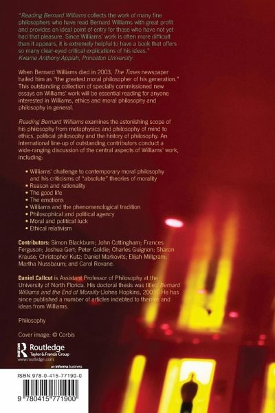 When Bernard Williams died in 2003, the Times newspaper hailed him 'as the greatest moral philosopher of his generation'. This outstanding collection of specially commissioned new essays on Williams's work is essential reading for anyone interested in Williams, ethics and moral philosophy and philosophy in general. Reading Bernard Williams examines the astonishing scope of his philosophy from metaphysics and philosophy of mind to ethics, political philosophy and the history of philosophy. An international line up of outstanding contributors discuss, amongst others, the following central aspects of Williams's work: Williams's challenge to contemporary moral philosophy and his criticisms of 'absolute' theories of morality reason and rationality the good life the emotions Williams and the phenomenological tradition philosophical and political agency moral and political luck ethical relativism Contributors : Simon Blackburn; John Cottingham; Frances Ferguson; Joshua Gert; Peter Goldie; Charles Guignon; Sharon Krause; Christopher Kutz; Daniel Markovits; Elijah Millgram; Martha Naussbaum; Carol Rovane