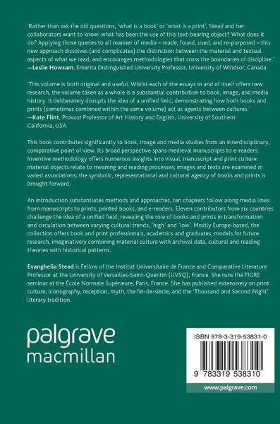 This book contributes significantly to book, image and media studies from an interdisciplinary, comparative point of view. Its broad perspective spans medieval manuscripts to e-readers. Inventive methodology offers numerous insights into visual, manuscript and print culture: material objects relate to meaning and reading processes; images and texts are examined in varied associations; the symbolic, representational and cultural agency of books and prints is brought forward.