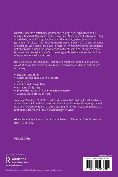 Reading Brandom: On A Spirit of Trustis essential reading for all students and scholars of Brandom's work and those in philosophy of language. It will also be important reading for those studying nineteenth-century philosophy, particularly Hegel and the Phenomenology of Spirit.