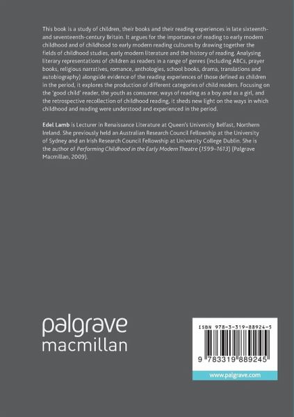 "With this passionate and compelling book, Edel Lamb provides a much needed reflection on the reading experiences of early modern British children. ... This book comes as a welcome advancement in the direction of historically aware studies on childhood, finally distanced from any useless moralism and open to the challenge of difference." (Luana Salvarani, History of Education, Vol. 49 (1), January, 2020)