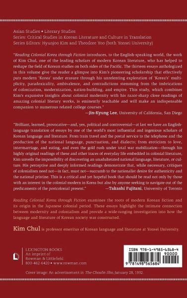 Preface, Kim Chul Note on Romanization Foreword, Theodore Jun Yoo Chapter 1: Yo-dokari Tablet: The "Modernity" of Korean Language Chapter 2: "Oily touches on a canvas, stroking and scattering the pigments": Train Travel and Korean Fiction Chapter 3: "No o?? yogi wan?" What Brings you here?": Korean Fiction and the Standard Language Chapter 4: "The law is not afraid of yangban, is it?": Korean Fiction and Modern Law Chapter 5: "To talk it over in English": Korean Fiction and English Chapter 6: "Love is blind": Korean Fiction and Eroticism Chapter 7: "I wish to marry a mainland damsel": Korean Fiction and the "Mainland-Choson Marriage" Chapter 8: "She who returned like a return postcard": Korean Fiction and the Postal System Chapter 9: Coffee, Purande, Love Candy, and Nanjji: Culinary Lifestyle and Colonial Modernity Chapter 10: "The agitators are ?ing me": The Birth of Korean Language Chapter 11: "Is there any power greater than gold?": Gold and Korean Fiction Chapter 12: The Colonial Ventriloquists: Choson Writers Writing in Japanese Chapter 13: "When they've all been stripped naked, no part was good for beating": Korean Fiction and the August 15 Liberation Afterword, Theodore Hughes