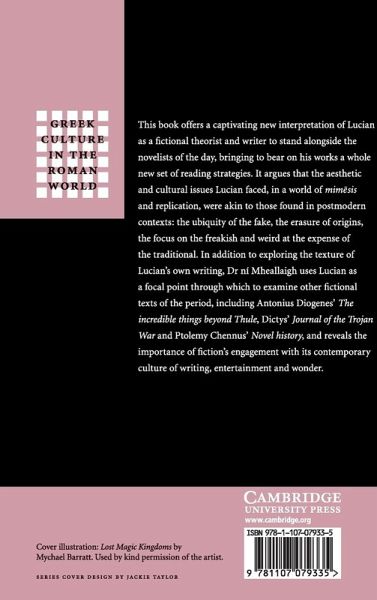 This book offers a captivating new interpretation of Lucian as a fictional theorist and writer to stand alongside the novelists of the day, bringing to bear on his works a whole new set of reading strategies. It argues that the aesthetic and cultural issues Lucian faced, in a world of mimesis and replication, were akin to those found in postmodern contexts: the ubiquity of the fake, the erasure of origins, the focus on the freakish and weird at the expense of the traditional. In addition to exploring the texture of Lucian's own writing, Dr ní Mheallaigh uses Lucian as a focal point through which to examine other fictional texts of the period, including Antonius Diogenes' The Incredible Things Beyond Thule, Dictys' Journal of the Trojan War and Ptolemy Chennus' Novel History, and reveals the importance of fiction's engagement with its contemporary culture of writing, entertainment and wonder.