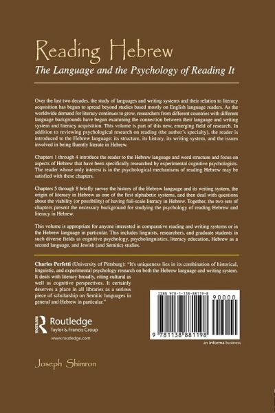 Over the last two decades, the study of languages and writing systems and their relationship to literacy acquisition has begun to spread beyond studies based mostly on English language learners. As the worldwide demand for literacy continues to grow, researchers from different countries with different language backgrounds have begun examining the connection between their language and writing system and literacy acquisition. This volume is part of this new, emerging field of research. In addition to reviewing psychological research on reading (the author's specialty), the reader is introduced to the Hebrew language: its structure, its history, its writing system, and the issues involved in being fluently literate in Hebrew. Chapters 1-4 introduce the reader to the Hebrew language and word structure and focuses on aspects of Hebrew that have been specifically researched by experimental cognitive psychologists. The reader whose only interest is in the psychological mechanisms of reading Hebrew may be satisfied with these chapters. Chapters 5-8 briefly surveys the history of the Hebrew language and its writing system, the origin of literacy in Hebrew as one of the first alphabetic systems, and then raises questions about the viability (or possibility) of having full-scale literacy in Hebrew. Together, the two sets of chapters present the necessary background for studying the psychology of reading Hebrew and literacy in Hebrew. This volume is appropriate for anyone interested in comparative reading and writing systems or in the Hebrew language in particular. This includes linguists, researchers, and graduate students in such diverse fields as cognitive psychology, psycholinguistics, literacy education, English as a second language, and communication disorders.