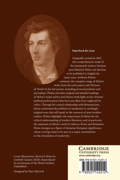 This book is a comprehensive study of the nineteenth-century German poet Heinrich Heine. Anthony Phelan examines the complete range of Heine's work, from the early poetry and 'Pictures of Travel' to the last poems, including personal polemic and journalism. Phelan provides original and detailed readings of Heine's major poetry and throws fresh light on his virtuoso political performances that have too often been neglected by critics. Through his critical relationship with Romanticism, Heine confronted the problem of modernity in startlingly original ways that still speak to the concerns of post-modern readers. Phelan highlights the importance of Heine for the critical understanding of modern literature, and in particular the responses to Heine's work by Adorno, Kraus and Benjamin. Heine emerges as a figure of immense European significance, whose writings need to be seen as a major contribution to the articulation of modernity.