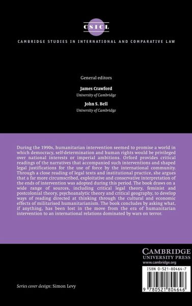 During the 1990s, humanitarian intervention seemed to promise a world in which democracy, self-determination and human rights would be privileged over national interests or imperial ambitions. Orford provides critical readings of the narratives that accompanied such interventions and shaped legal justifications for the use of force by the international community. Through a close reading of legal texts and institutional practice, she argues that a far more circumscribed, exploitative and conservative interpretation of the ends of intervention was adopted during this period. The book draws on a wide range of sources, including critical legal theory, feminist and postcolonial theory, psychoanalytic theory and critical geography, to develop ways of reading directed at thinking through the cultural and economic effects of militarised humanitarianism. The book concludes by asking what, if anything, has been lost in the move from the era of humanitarian intervention to an international relations dominated by wars on terror.