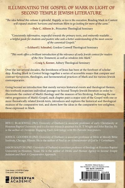 For several decades, the Jewishness of Jesus has been at the forefront of scholarship. Students of the New Testament are more than ever aware of the importance of understanding Jesus and the Gospels in their Jewish context. In Reading Mark in Context, a team of Gospel scholars explore the Gospel of Mark in light of Second Temple Jewish literature.