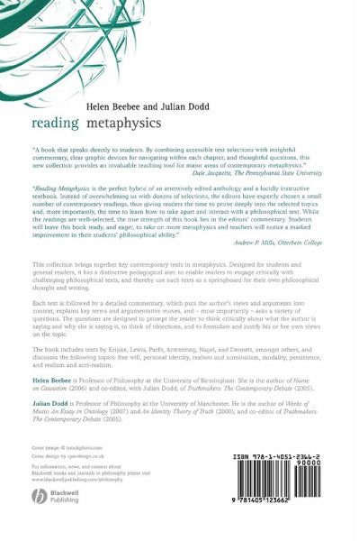 "Reading Metaphysics is the perfect hybrid of anattentively edited anthology and a lucidly instructive textbook.Instead of overwhelming us with dozens of selections, the editorshave expertly chosen a small number of contemporary readings, thusgiving readers the time to probe deeply into the selected topicsand, more importantly, the time to learn how to take apart andinteract with a philosophical text. While the readings arewell-selected, the true strength of this book lies in theeditors' commentary. Students will leave this book ready, andeager, to take on more metaphysics and teachers will notice amarked improvement in their students' philosophicalability."