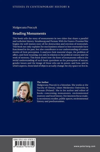 This book tells the story of monuments in two cities that share a parallel and turbulent history: Strasbourg and Poznan. With the Franco-Prussian War begins the well-known story of the destruction and erection of memorials. This book not only explains the mechanisms related to how memorials have functioned in the past, but also contributes to our understanding of current modes of their perception. It analyzes their material shape, the problem of affect, and their meaning, not only in relation to the political context and the work of memory. This book shows how the form of monuments reflects the social understanding of such basic questions as the perception of nature, gender issues and the image of those who are in power, and how, and in which aspects, those kind of objects actually change the city space we live in.