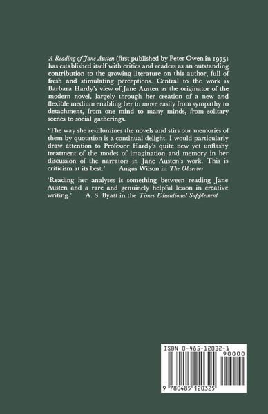 A Reading of Jane Austen (first published by Peter Owen in 1975) has established itself with critics and readers as an outstanding contribution to the growing literature on this author, full of fresh and stimulating perceptions. Central to the word is Barbara Hardy's view of Jane Austen as the originator of the modern novel, largely through her creation of a new and flexible medium enabling her to move easily from sympathy to detachment, from one mind to many minds, from solitary scenes to social gatherings.