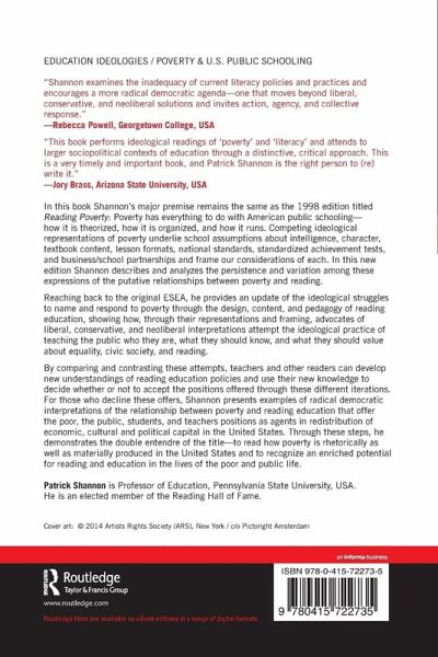 In this book Shannon's major premise remains the same as his 1998 Reading Poverty: Poverty has everything to do with American public schooling-how it is theorized, how it is organized, and how it runs. Competing ideological representations of poverty underlie school assumptions about intelligence, character, textbook content, lesson formats, national standards, standardized achievement tests, and business/school partnerships and frame our considerations of each. In this new edition, Shannon provides an update of the ideological struggles to name and respond to poverty through the design, content, and pedagogy of reading education, showing how, through their representations and framing, advocates of liberal, conservative, and neoliberal interpretations attempt the ideological practice of teaching the public who they are, what they should know, and what they should value about equality, civic society, and reading. For those who decline these offers, Shannon presents radical democratic interpretations of the relationship between poverty and reading education that position the poor, the public, students, and teachers as agents in redistribution of economic, cultural, and political capital in the United States.
