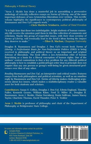 Douglas B. Rasmussen and Douglas J. Den Uyl's recent book Norms of Liberty: A Perfectionist Basis for Non-Perfectionist Politics (Penn State University Press, 2005) is being received in philosophy and political theory as an important and original defense of liberalism. The book offers a neo-Aristotelian ethic of human flourishing as a basis for a liberal conception of human rights. One of the authors' central contentions is that a key problem for any (liberal) political philosophy is how to establish a political/legal order which in principle does not require that any one person or group's well-being be given structured preference over that of any other. This companion volume, an interpretive and critical reader, features essays from both philosophers and political scientists, as well as an omnibus reply by Rasmussen and Den Uyl. Norms of Liberty makes challenging arguments about key issues, which makes a multi-disciplinary reader a valuable asset for both students and scholars. Reading Rasmussen and Den Uyl is designed both to explicate the book's arguments and to explore possible objections.