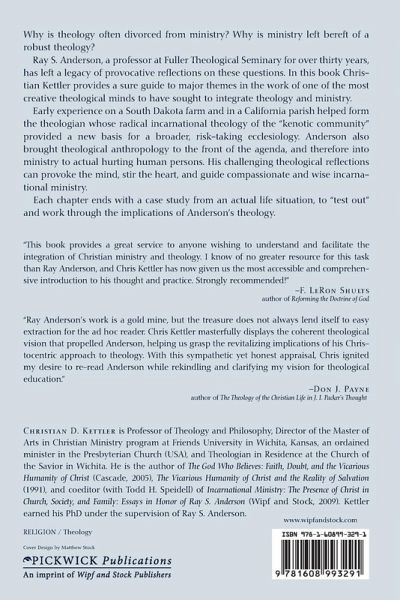 Why is theology often divorced from ministry? Why is ministry left bereft of a robust theology? Ray S. Anderson, a professor at Fuller Theological Seminary for over thirty years, has left a legacy of provocative reflections on these questions. In this book Christian Kettler provides a sure guide to major themes in the work of one of the most creative theological minds to have sought to integrate theology and ministry. Early experience on a South Dakota farm and in a California parish helped form the theologian whose radical incarnational theology of the ""kenotic community"" provided a new basis for a broader, risk-taking ecclesiology. Anderson also brought theological anthropology to the front of the agenda, and therefore into ministry to actual hurting human persons. His challenging theological reflections can provoke the mind, stir the heart, and guide compassionate and wise incarnational ministry. Each chapter ends with a case study from an actual life situation, to ""test out"" and work through the implications of Anderson's theology.
