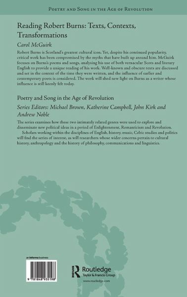 Robert Burns is Scotland's greatest cultural icon. Yet, despite his continued popularity, critical work has been compromised by the myths that have built up around him. McGuirk focuses on Burns's poems and songs, analysing his use of both vernacular Scots and literary English to provide a unique reading of his work.