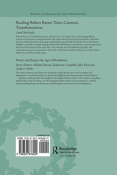 Robert Burns is Scotland's greatest cultural icon. Yet, despite his continued popularity, critical work has been compromised by the myths that have built up around him. McGuirk focuses on Burns's poems and songs, analysing his use of both vernacular Scots and literary English to provide a unique reading of his work.