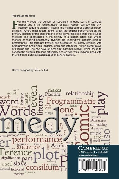 For many years the domain of specialists in early Latin, in complex metres, and in the reconstruction of texts, Roman comedy is now established in the mainstream of Classical literary criticism. Where most books stress the original performance as the primary location for the encountering of the plays, this book finds the locus of meaning and appreciation in the activity of a reader, albeit one whose manner of reading necessarily involves the imaginative reconstruction of performance. The texts are treated, and celebrated, as literary devices, with programmatic beginnings, middles, ends, and intertexts. All the extant plays of Plautus and Terence have at least a bit part in this book, which seeks to expose the authors' fabulous artificiality and artifice, while playing along with their differing but interrelated poses of generic humility.
