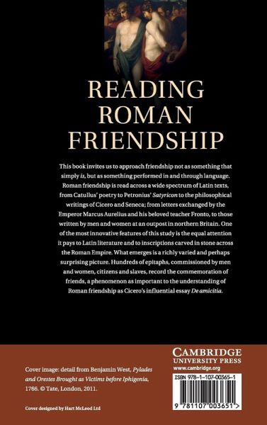 This book invites us to approach friendship not as something that simply is, but as something performed in and through language. Roman friendship is read across a wide spectrum of Latin texts, from Catullus' poetry to Petronius' Satyricon to the philosophical writings of Cicero and Seneca, from letters exchanged by the Emperor Marcus Aurelius and his beloved teacher Fronto, to those written by men and women at an outpost in northern Britain. One of the most innovative features of this study is the equal attention it pays to Latin literature and to inscriptions carved in stone across the Roman Empire. What emerges is a richly varied and perhaps surprising picture. Hundreds of epitaphs, commissioned by men and women, citizens and slaves, record the commemoration of friends, which is of equal importance to understanding Roman friendship as Cicero's influential essay De amicitia.