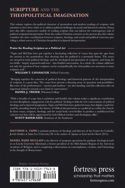 This volume explores the political character of premodern and modern readings of Scripture with attention to how these relate to or address political challenges in social and historical context. Essays here also offer constructive models of reading Scripture that can inform the contemporary task of political scriptural interpretation. From the earliest Christian centuries to the present day, this volume considers the close coordination between Scripture, theology, and social and political concerns, providing a robust survey of Christian theopolitical Scripture interpretation.