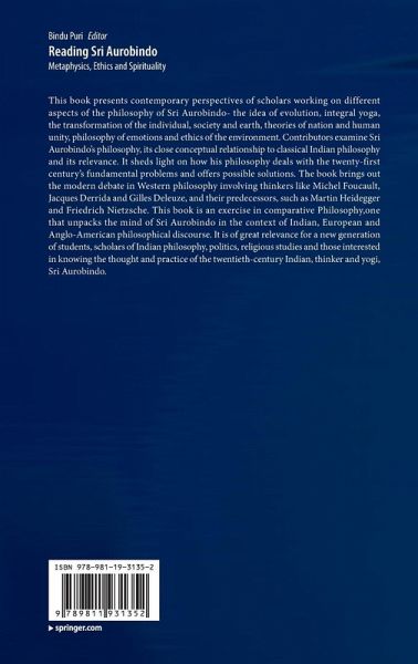 This book presents contemporary perspectives of scholars working on different aspects of the philosophy of Sri Aurobindo- the idea of evolution, integral yoga, the transformation of the individual, society and earth, theories of nation and human unity, philosophy of emotions and ethics of the environment. Contributors examine Sri Aurobindo's philosophy, its close conceptual relationship to classical Indian philosophy and its relevance. It sheds light on how his philosophy deals with the twenty-first century's fundamental problems and offers possible solutions. The book brings out the modern debate in Western philosophy involving thinkers like Michel Foucault, Jacques Derrida and Gilles Deleuze, and their predecessors, such as Martin Heidegger and Friedrich Nietzsche. This book is an exercise in comparative Philosophy,one that unpacks the mind of Sri Aurobindo in the context of Indian, European and Anglo-American philosophical discourse. It is of great relevance for a new generationof students, scholars of Indian philosophy, politics, religious studies and those interested in knowing the thought and practice of the twentieth-century Indian, thinker and yogi, Sri Aurobindo.