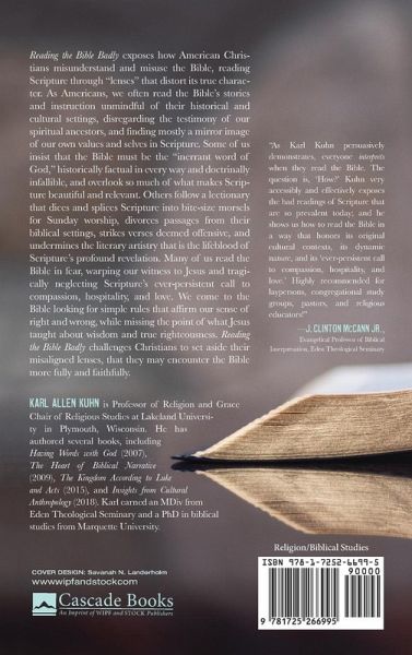Reading the Bible Badly exposes how American Christians misunderstand and misuse the Bible, reading Scripture through "lenses" that distort its true character. As Americans, we often read the Bible's stories and instruction unmindful of their historical and cultural settings, disregarding the testimony of our spiritual ancestors, and finding mostly a mirror image of our own values and selves in Scripture. Some of us insist that the Bible must be the "inerrant word of God," historically factual in every way and doctrinally infallible, and overlook so much of what makes Scripture beautiful and relevant. Others follow a lectionary that dices and splices Scripture into bite-size morsels for Sunday worship, divorces passages from their biblical settings, strikes verses deemed offensive, and undermines the literary artistry that is the lifeblood of Scripture's profound revelation. Many of us read the Bible in fear, warping our witness to Jesus and tragically neglecting Scripture's ever-persistent call to compassion, hospitality, and love. We come to the Bible looking for simple rules that affirm our sense of right and wrong, while missing the point of what Jesus taught about wisdom and true righteousness. Reading the Bible Badly challenges Christians to set aside their misaligned lenses, that they may encounter the Bible more fully and faithfully.