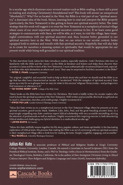 In a secular age which dismisses once-revered matters such as Bible reading, is there still a point to reading and studying Christianity's foundational text? This book will answer an unequivocal ""Absolutely[!]."" Why? For us located in the West, the Bible is a vital part of our ""spiritual ancestry,"" a dominant idea of the book. Hence, learning how to read and interpret the Bible properly (particularly, the New Testament) is like getting to know our spiritual ancestry better. The main strategy that this work will suggest is to treat the New Testament as a metaphorical textual village where some of our most important spiritual ancestors continue to live. If we learn some good strategies to communicate with them, we will be able, as it were, to visit this village, have meaningful conversations with our spiritual ancestors and, thus, become better grounded in our spiritual ancestry here in the West. With that, we can return to our secular context, better equipped both to embrace and wrestle with that spiritual ancestry. Hopefully, that will also help us to create for ourselves a meaning-system or spirituality that would be appropriate for our present world while being well grounded in our spiritual tradition.