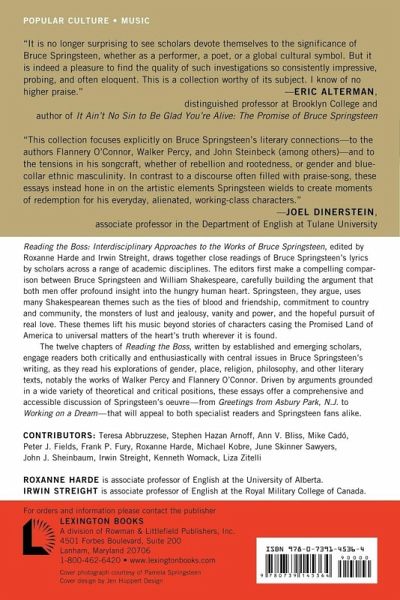 Reading the Boss: Interdisciplinary Approaches to the Works of Bruce Springsteen, edited by Roxanne Harde and Irwin Streight, draws together close readings of Bruce Springsteen's lyrics by scholars across a range of academic disciplines. The editors first make a compelling comparison between Bruce Springsteen and William Shakespeare, carefully building the argument that both men offer profound insight into the hungry human heart. Springsteen, they argue, uses many Shakespearean themes such as the ties of blood and friendship, commitment to country and community, the monsters of lust and jealousy, vanity and power, and the hopeful pursuit of real love. These themes lift his music beyond stories of characters casing the Promised Land of America to universal matters of the heart's truth wherever it is found. Then, the twelve chapters of Reading the Boss, written by established and emerging scholars, engage readers both critically and enthusiastically with central issues in Bruce Springsteen's writing, as they read his explorations of gender, place, religion, philosophy, and other literary texts, notably the works of Walker Percy and Flannery O'Connor. Driven by arguments grounded in a wide variety of theoretical and critical positions, these essays offer a comprehensive and accessible discussion of Springsteen's oeuvre, from Greetings From Asbury Park, N.J. to Working on a Dream that will appeal to both specialist readers and Springsteen fans alike.