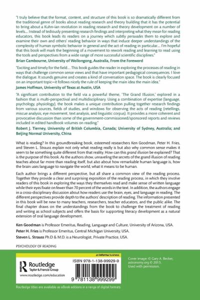 What is reading? In this groundbreaking book, esteemed researchers Ken Goodman, Peter Fries, and Steven Strauss, explain not only what reading really is but also why common sense makes it seem to be something quite different from that reality. How can this grand illusion be explained? That is the purpose of this book. As the authors show, unraveling the secrets of the grand illusion of reading teaches about far more than reading itself, but also about how remarkable human language is, how the brain uses language to navigate the world, what it means to be human.
