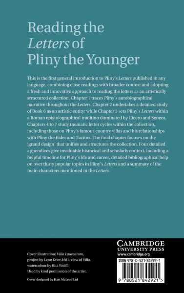 This is the first general introduction to Pliny's Letters published in any language, combining close readings with broader context and adopting a fresh and innovative approach to reading the letters as an artistically structured collection. Chapter 1 traces Pliny's autobiographical narrative throughout the Letters; Chapter 2 undertakes detailed study of Book 6 as an artistic entity; while Chapter 3 sets Pliny's letters within a Roman epistolographical tradition dominated by Cicero and Seneca. Chapters 4 to 7 study thematic letter cycles within the collection, including those on Pliny's famous country villas and his relationships with Pliny the Elder and Tacitus. The final chapter focuses on the 'grand design' which unifies and structures the collection. Four detailed appendices give invaluable historical and scholarly context, including a helpful timeline for Pliny's life and career, detailed bibliographical help on over 30 popular topics in Pliny's letters and a summary of the main characters mentioned in the Letters.