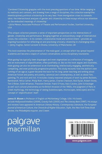 Male gazing has typically been disparaged and even stigmatized as a reflection of misogyny and an instrument of objectification, often justifiably so. But as this book argues and illustrates, male gazing can also be understood as an illuminating, intellectually engaging, aesthetically compelling, and even politically progressive practice. This study recounts how the author's own coming-of-an-age as a gazer became the basis for his long career teaching and writing about American fiction and poetry and poetry, canonical and contemporary, as well as about film, painting, TV, and rock-and-roll. It includes closely-reasoned analyses of work by James Baldwin, Rembrandt, Willa Cather, Philip Roth, Henry James, Charles Chesnutt, Bob Dylan, Robert Stone,Tim O'Brien, Edith Wharton, Theodore Dreiser, Frank O'Hara, Italo Calvino, John Schlesinger as well such cultural phenomena as the British Invasion of the 1960s, the Judgment of Paris in Greek mythology, the technology of seeing (kaleidoscopes, microscopes, telescopes) and the concept of 'objectification' itself.