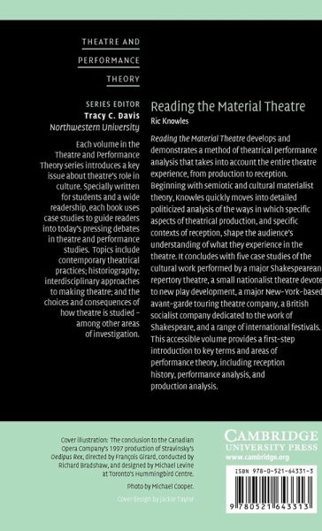 Reading the Material Theatre develops and demonstrates a method of theatrical performance analysis that takes into account the entire theatre experience, from production to reception. Beginning with semiotic and cultural materialist theory, Knowles quickly moves into detailed politicized analysis of the ways in which specific aspects of theatrical production, and specific contexts of reception, shape the audience's understanding of what they experience in the theatre. It concludes with five case studies of the cultural work performed by a major Shakespearean repertory theatre, a small nationalist theatre devoted to new play development, a major New York-based avant-garde touring theatre company, a British socialist company dedicated to the work of Shakespeare, and a range of international festivals. This accessible 2004 volume provides a first-step introduction to key terms and areas of performance theory, including reception history, performance analysis, and production analysis.