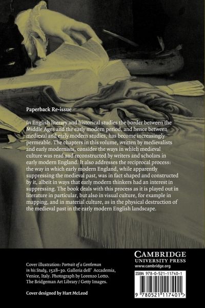 In English literary and historical studies the border between the Middle Ages and the Early Modern period, and hence between 'medieval' and 'early modern' studies, has become increasingly permeable. Written by an international group of medievalists and early modernists, the essays in this volume examine the ways in which medieval culture was read and reconstructed by writers, editors and scholars in early modern England. It also addresses the reciprocal process: the way in which early modern England, while apparently suppressing the medieval past, was in fact shaped and constructed by it, albeit in ways that early modern thinkers had an interest in suppressing. The book deals with this process as it is played out not only in literature but also in visual culture - for example in mapping - and in material culture - as in the physical destruction of the medieval past in the early modern English landscape.