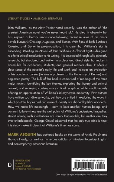 A Flaw of Light:Reading the Novels of John Williams is a comprehensive and accessible introduction to the novels of one of America’s unfairly neglected writers. This clearly structured study offers detailed readings of the major novels combined with a brief assessment of Williams as an academic, poet and teacher.