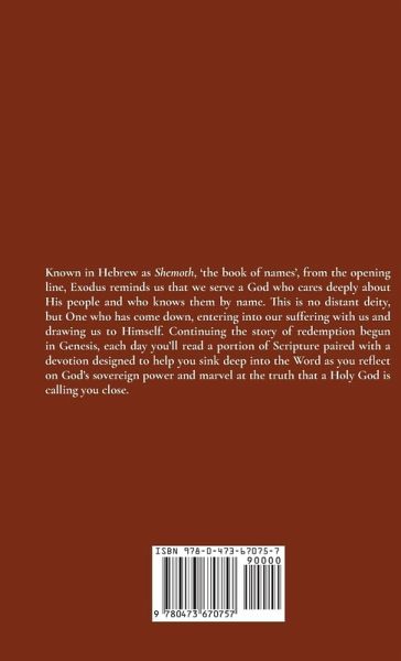 Known in Hebrew as Shemoth, 'the book of names', from the opening line, Exodus reminds us that we serve a God who cares deeply about His people and knows them by name. This is no distant deity, but One who sees and hears and shows His concern by coming down and entering into it all with us. Yet He does more than simply journey alongside us, He calls us out-out of bondage and slavery to sin and into freedom, into relationship with Himself, inviting us to become a people who dwell in the beauty of His presence. And so, we extend you the same invitation as we journey through Exodus together in this eight week reading plan-to open yourself to the wonder of who He is and what He is leading you into. Each weekday you will read a selection from Exodus and an accompanying devotional that both illuminates the context of the passage and speaks to the heart. Each weekend you'll have an opportunity to rest, catch up, and reflect on all God has revealed to you, a task made simpler and deeper by pairing this devotional with our "Journalling through Exodus" resource. Starting March 20th 2023, The Devoted Collective will be reading Exodus in community. For more information on how to join them visit www.thedevotedcollective.org.