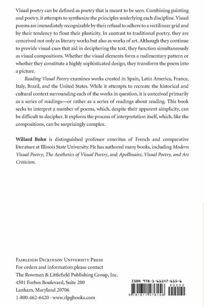 Reading Visual Poetry examines works created in Spain, Latin America, France, Italy, Brazil, and the United States. Besides explicating individual works, it investigates the dynamics involved in reading (and viewing) visual poetry.