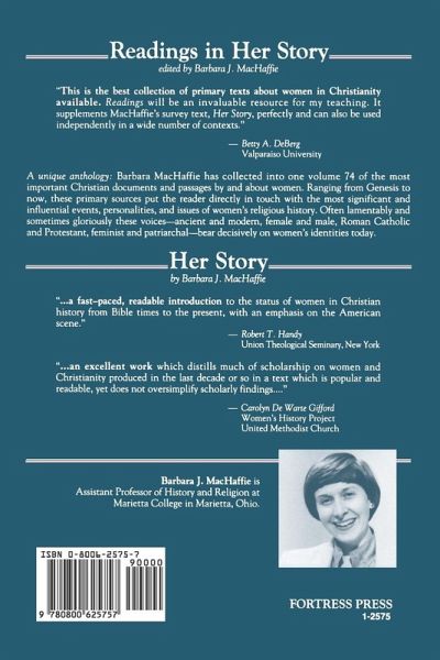 A unique anthology. Barbara MacHaffie has collected into one volume 74 of the most important Christian documents and passages by and about women. Ranging from Genesis to now, these primary sources put the reader directly in touch with the most significant and influential events, personalities and issues of women's religious history. Often lamentably and sometimes gloriously, these voices-ancient and modern, female and male, Roman Catholic and Protestant, feminist and patriarchal-bear decisively on women's identities today.