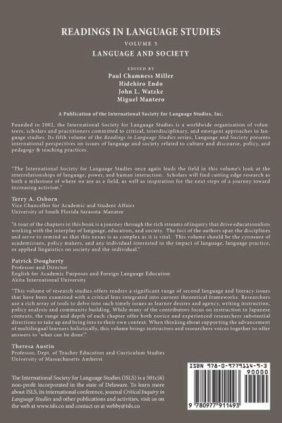 Language and Society is the fifth volume of the Readings in Language Studies series published by the International Society for Language Studies, Inc. Edited by Paul Chamness Miller, Hidehiro Endo, John L. Watzke, and Miguel Mantero, volume five sustains the society's mission to organize and disseminate the work of its contributing members through peer-reviewed publications. The book presents international perspectives on language and society in three thematic sections: teaching practices & pedagogy, policy, and culture. A resource for scholars and students, Language and Society represents the latest scholarship in new and emergent areas of inquiry.