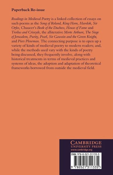 Readings in Medieval Poetry is a linked collection of essays on such poems as the Song of Roland, King Horn, Havelok, Sir Orfeo, Chaucer's Book of the Duchess, House of Fame and Troilus and Criseyde, the alliterative Morte Arthure, The Siege of Jerusalem, Purity, Pearl, Sir Gawain and the Green Knight, and Piers Plowman. The connecting purpose is to open up a variety of kinds of medieval poetry to modern readers; and, while the methods used vary with the kinds of poetry being discussed, they frequently involve, along with historical treatments in terms of medieval practices and systems of ideas, the adoption and adaptation of theoretical frameworks borrowed from outside the medieval field.