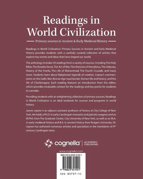 Readings in World Civilization: Primary Sources in Ancient and Early Medieval History provides students with a carefully curated collection of articles that explore key events and ideas that have shaped our world. The anthology includes 39 readings from a variety of sources, including The Holy Bible, The Rosetta Stone, The Art of War, The Histories of Herodotus, The Odyssey, History of the Franks, The Life of Mohammad, The Fourth Crusade, and many more. Students learn about Babylonian legends of creation, Caesar's commentaries on the Gallic War, Bronze Age royal burials, Roman life and history, and the life of Charlemagne. Each reading features an introduction from the editor, which provides invaluable context for the readings and key points for students to consider. Providing students with an enlightening collection of primary sources, Readings in World Civilization is an ideal textbook for courses and programs in world history.