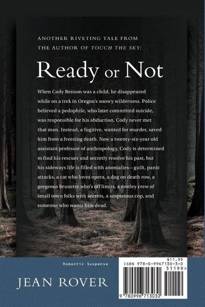 When Cody Benson was a child, he disappeared while on a trek in Oregon's snowy wilderness. Police believed a pedophile, who later committed suicide, was responsible for his abduction. Cody never met that man. Instead, a fugitive wanted for murder, saved him from a freezing death. Now a twenty-six-year-old assistant professor of anthropology, Cody is determined to find his rescuer and secretly resolve his past, but his sideways life is filled with anomalies--guilt, panic attacks, a cat who loves opera, a dog on death row, a gorgeous brunette who's off limits, a motley crew of small-town folks with secrets, a suspicious cop, and someone who wants him dead.