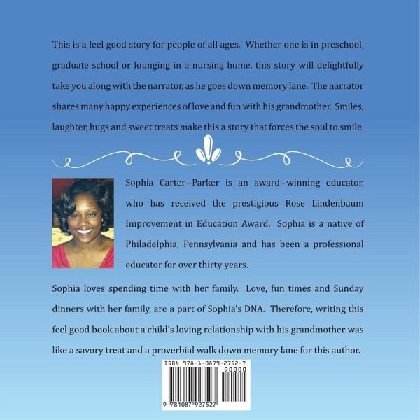 This is a feel good story for people of all ages. Whether in preschool, graduate school or lounging in a nursing home, this story will delightfully take you along with the narrator, as he goes down memory lane. The narrator shares many of his happy experiences of love and fun with his grandmother. Smiles, laughter, hugs and sweet treats make this a story that forces the soul to smile.